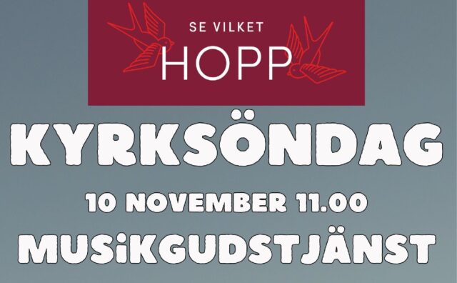 Kyrksöndag i Betelkyrkan Musikgudstjänst ”Se vilket hopp” Fredrik Lindé, Sångare och musiker från Equmeniakyrkans församlingar i Örebro Lunch efter gudstjänsten och sedan seminarium med Fredrik Lindé Seminariet i samarbete med studieförbundet BILDA